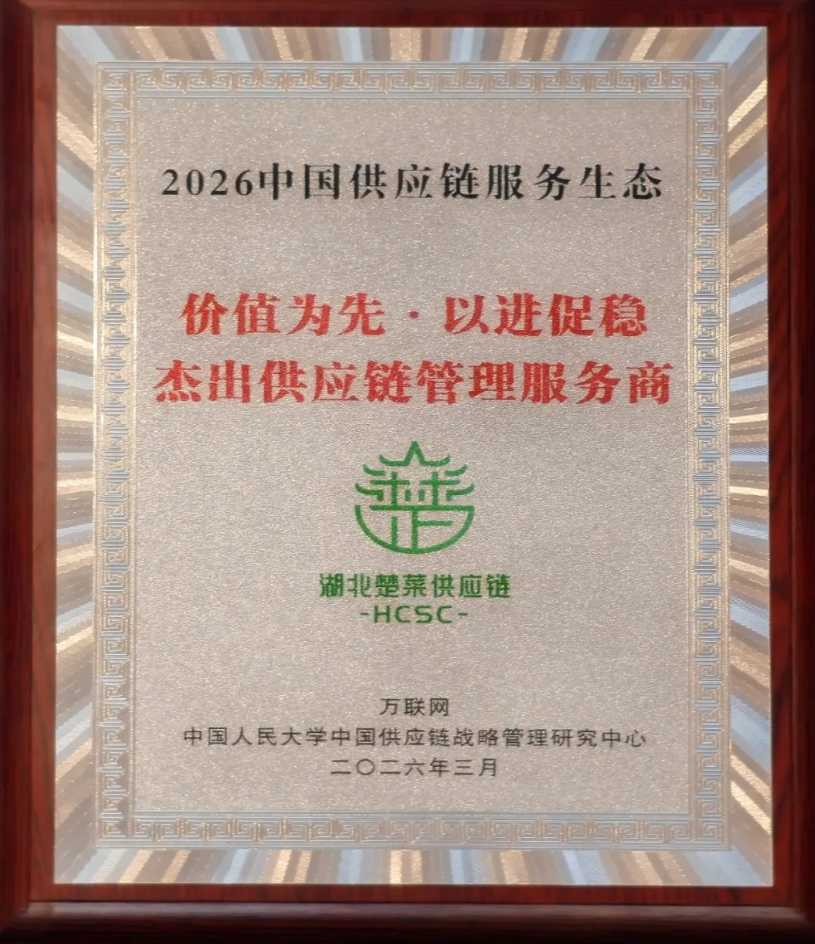 此次获评2026中国供应链服务生态杰出供应链管理服务商,不仅是对湖北楚菜供应链有限公司过往成绩的认可,更是对其未来发展的期许。公司将以此为契机,加快推动楚菜数字化供应链体系高效链通上下游产业关键环节,赋能楚菜产业链提质增效,为湖北建设农业强省、服务新质生产力贡献力量。